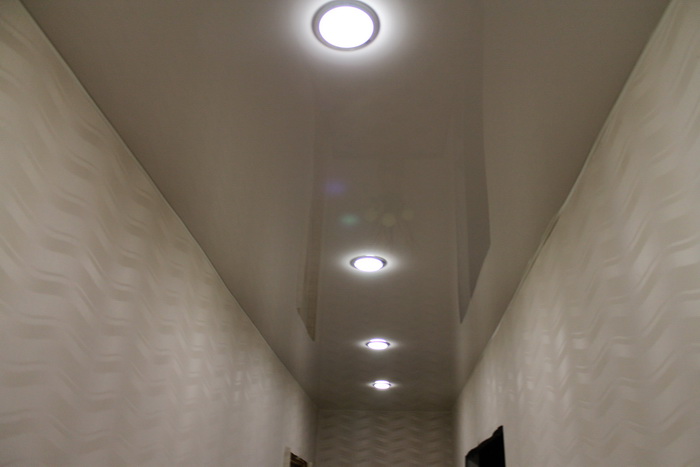 Глянцевый потолок в прихожей с подъемом уровня