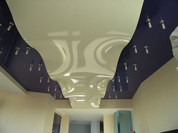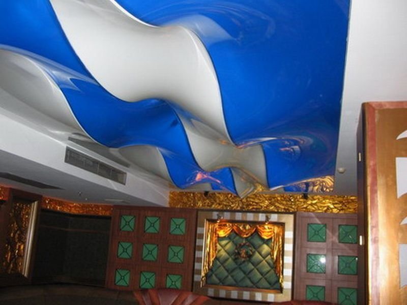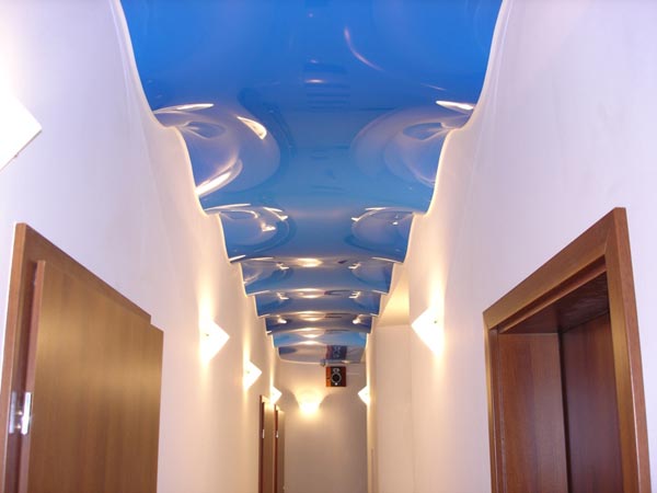 Натяжные потолки «Дюна» имеют объемную конусную форму. Внешне они выглядят довольно необычно, даже непривычно. В форме «дюн» угадываются природные ландшафты, поэтому не удивительно, что эти потолки гармонично смотрятся во многих интерьерах. На первый взгляд кажется, что форма этой конструкции больше подходит для ценителей авангарда и креатива в дизайне интерьера. Однако эти потолки хорошо смотрятся и в классических интерьерах, особенно если сделать плавный переход от «дюны» в колонну.